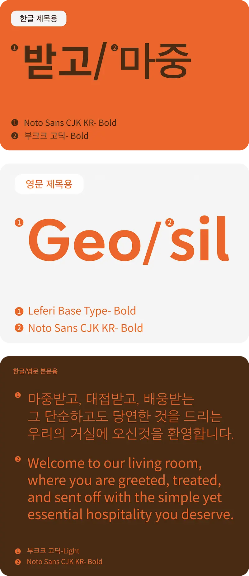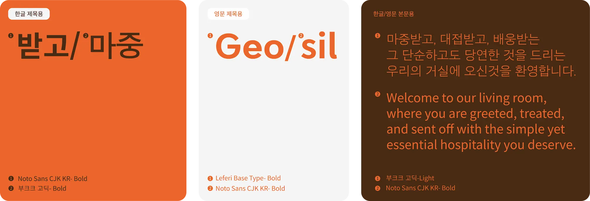 차분하고 균형잡힌 폰트를 브랜드 서체로 선정하여 브랜드 아이덴티티를 담아내었습니다.